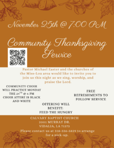 Community Thanksgiving Service Tues. Nov. 25, 2025 @ 7pm at
