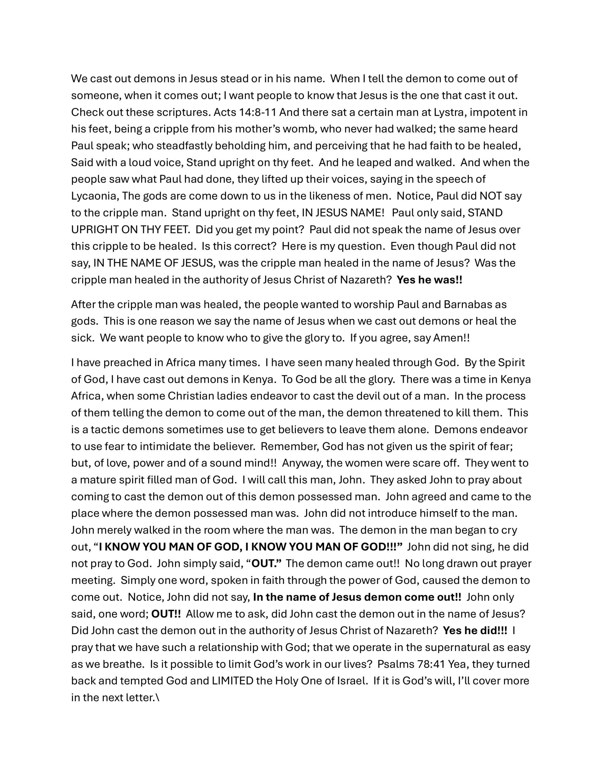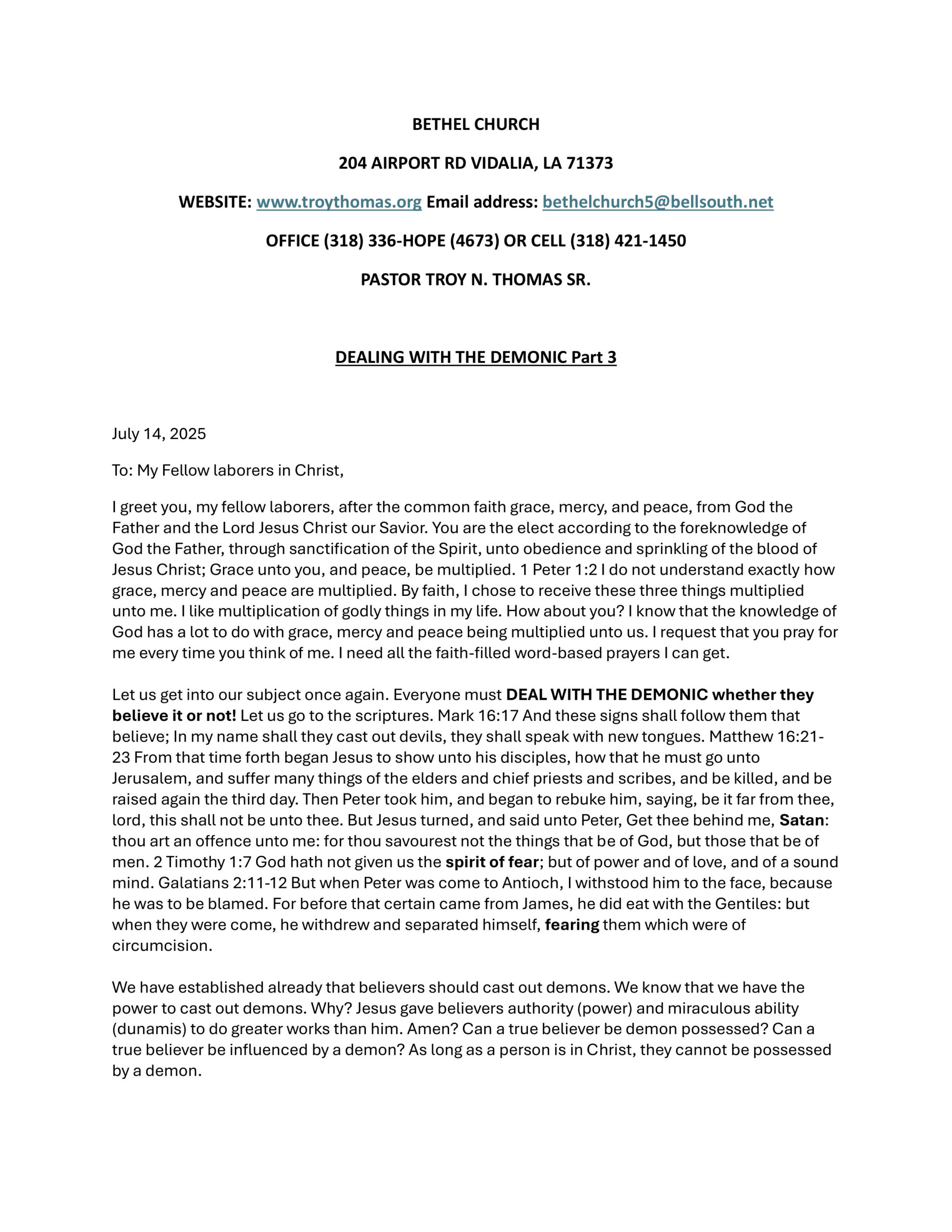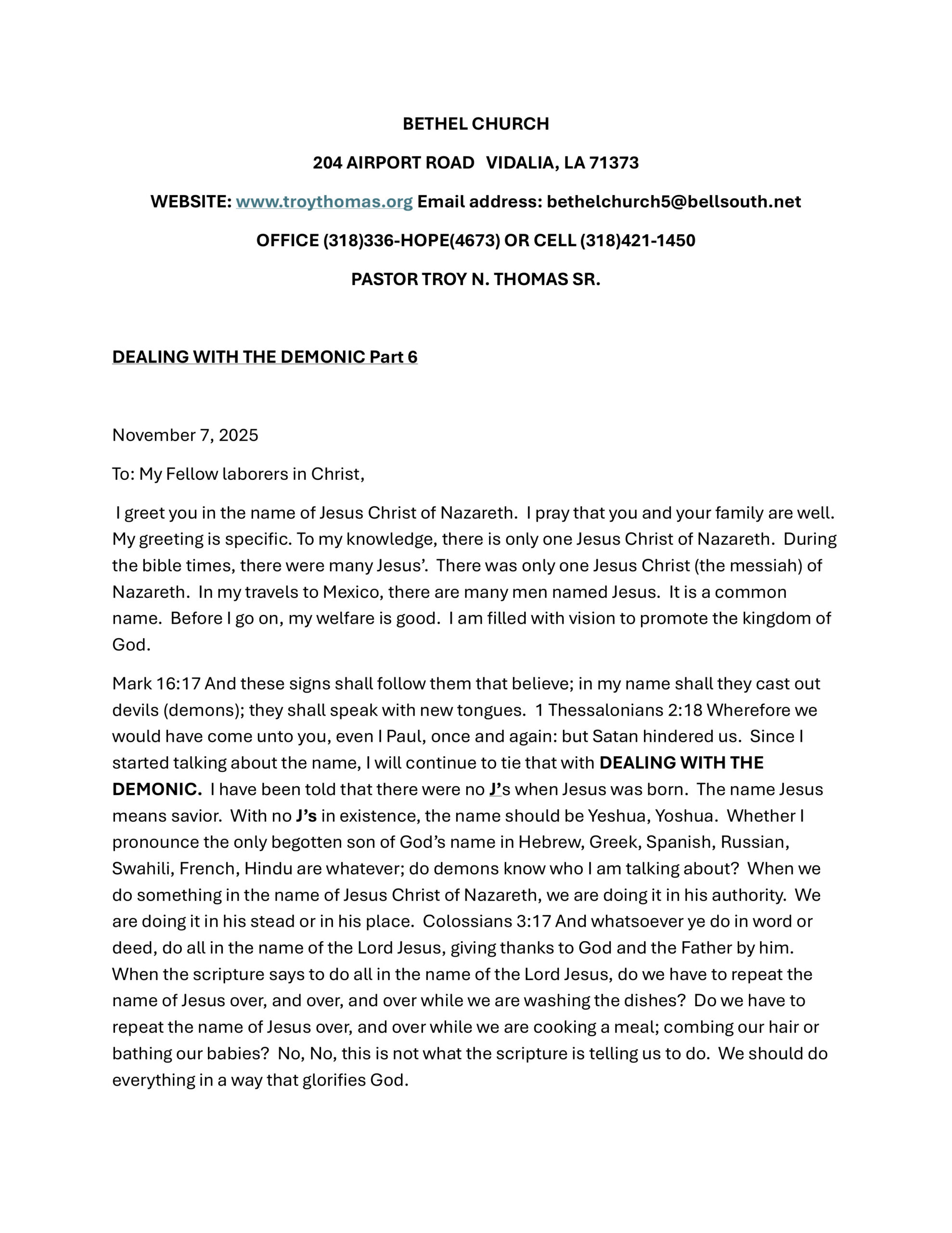 I greet you in the name of our Lord and Saviour Jesus Christ. It is a privilege and an honor to send you this letter. I am doing great in the Lord. I pray that you are doing great in your spirit, soul and body. 1 Thessalonians 5:23 I pray God your whole spirit and soul and body be preserved blameless unto the coming of our Lord Jesus Christ. By the way, if you would like me to stop sending you these ministry letters, let me know. I never desire my spiritual letters to be considered junk mail to those I send them to. I love to encourage and challenge ministers that desire to obey God. I realize that if I can encourage and strengthen you, you will help others. We are all in this God work together. Do you agree?