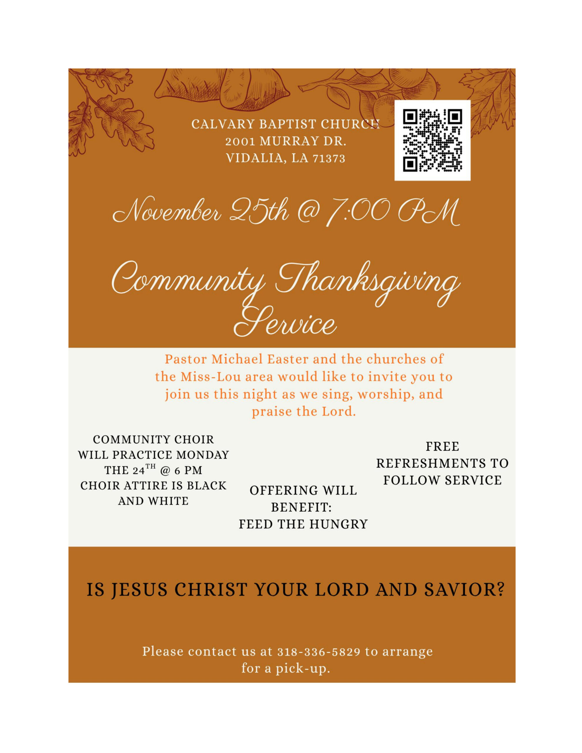 Place: Harrisonburg Christian Assembly, 300 Monroe St. Harrisonburg, LA 71340